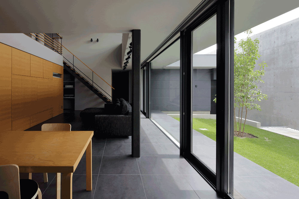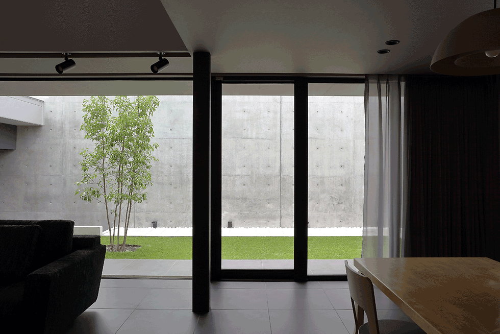 閉鎖感や圧迫感が強くなるRC壁と、LDKの間に庭を配置し住宅にゆとりをもたせることで、